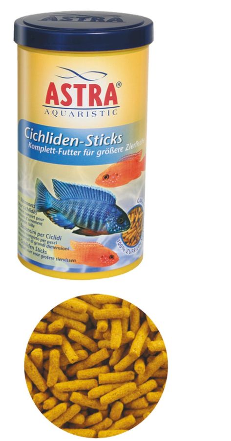 These rich ASTRA Chiclid Sticks contain high-quality animal and vegetable proteins amd meet the nutritional requirements of larger ornamental fish. The buoyant sticks slowly soften on the water's surface, are readily accepted and do not cloud the water.